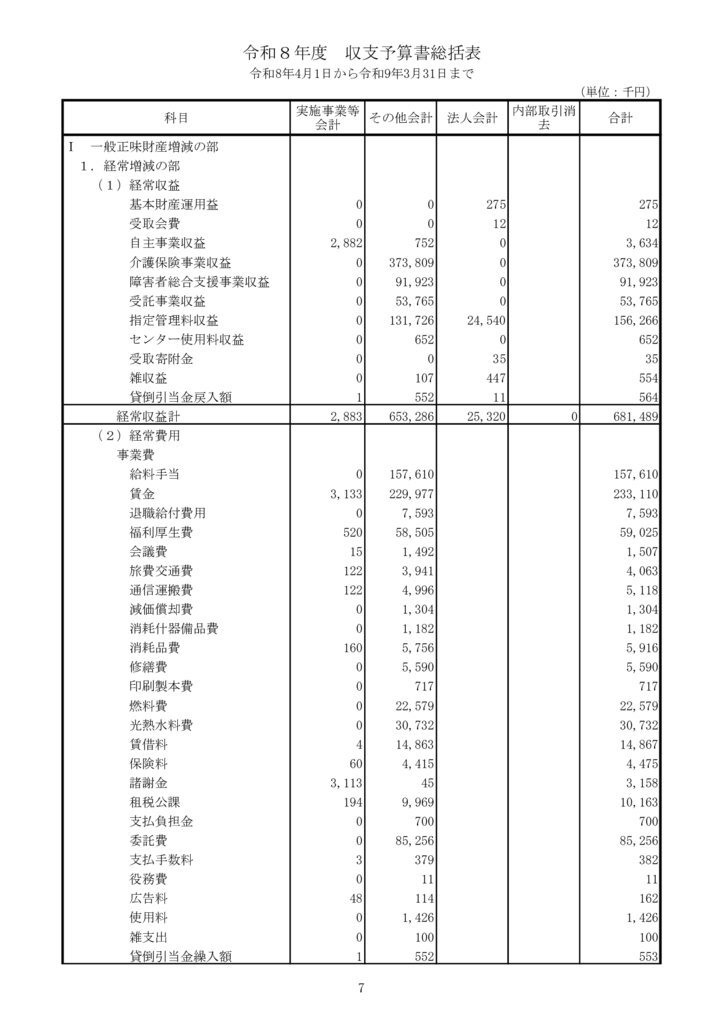 令和7年度収支予算書